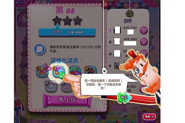 另外,右邊的部分可以看到朋友在此關卡所得分數的排行