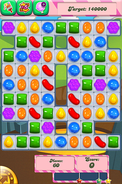 這畫面大家應該不陌生吧?這是Candy Crush的遊戲畫面,最近真的很紅