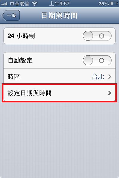 ▽步驟四:首先要把自動設定關掉,才會跑出紅色框框的項目《設定日期與時間》