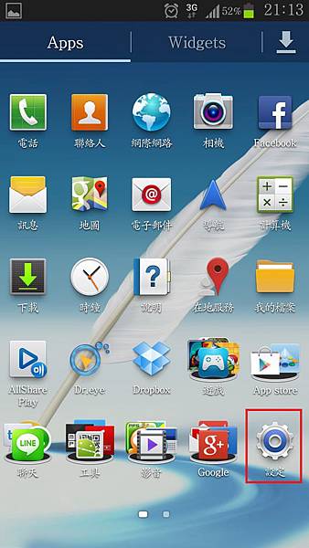 ▽步驟一:首先進入《設定》(下圖紅色框框處)