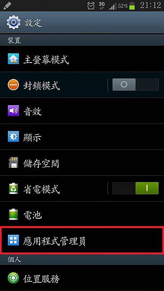 ▽步驟二:進入設定後,找到《應用程式管理員》(紅色框框處)